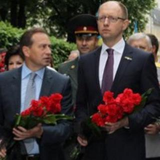 Яценюк явился к мемориалу в компании с Александром Турчиновым, где «нарвался» на активистов политического клуба «Альтернатива», которые встретили политиков выкриками.
