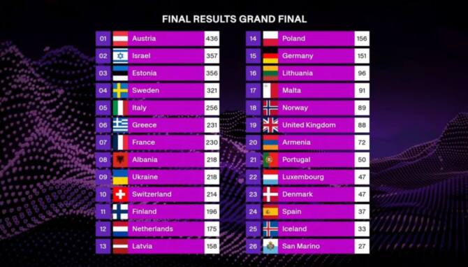Ближайшие конкуренты австрийца значительно обошли его по результатам зрительского голосования. Израиль получил на нем 297 голосов, а Эстония 258. Однако победу JJ обеспечили решения национальных жюри.