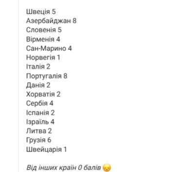 Как голосовали за Украину на "Евровидении": от зрителей Польши и Израиля 12 баллов, от Армении – ноль.