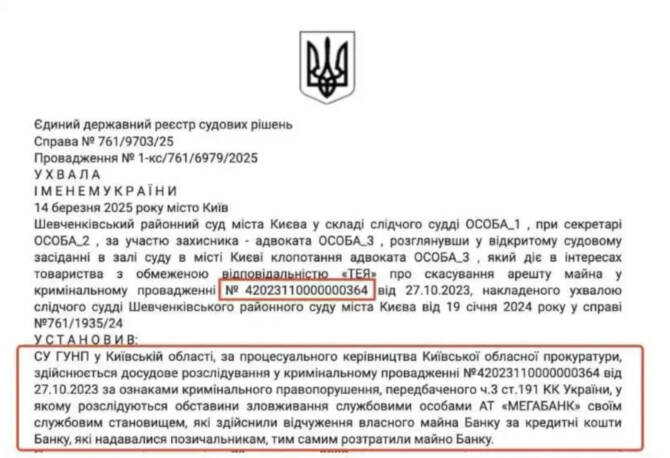 Правоохранительные органы Украины расследуют уголовное производство № 42019221430000469 относительно топменеджмента АО "Мегабанк", включая его бывшего владельца - Виктора Субботина, пишет издание.
