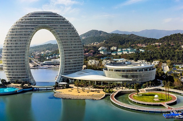 27 этажей, расположенных выше воды и 2 – ниже, этого шикарного отеля редкой конструкции создают полный овал. Закономерно, что он располагается в десятке самых дорогих отелей мира.