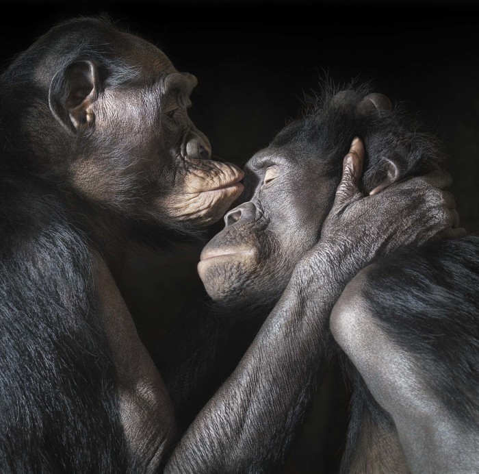 Пара бонобо. Этот вид шимпанзе обитает во впадине Конго и в Центральной Африке. Автор: Tim Flach.