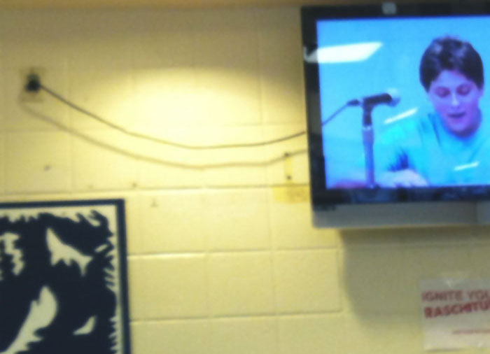 Телевизионный кабель питания превосходно дополняет микрофонный шнур на экране.