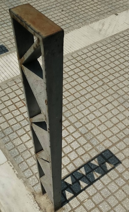 Тень от ограничителя совпадает со швами тротуарной плитки.