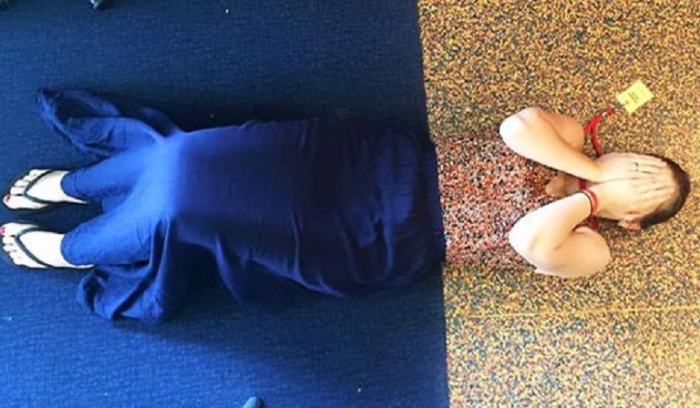 Девушка оказалась там, где ее наряд полностью соответствует обстановке.