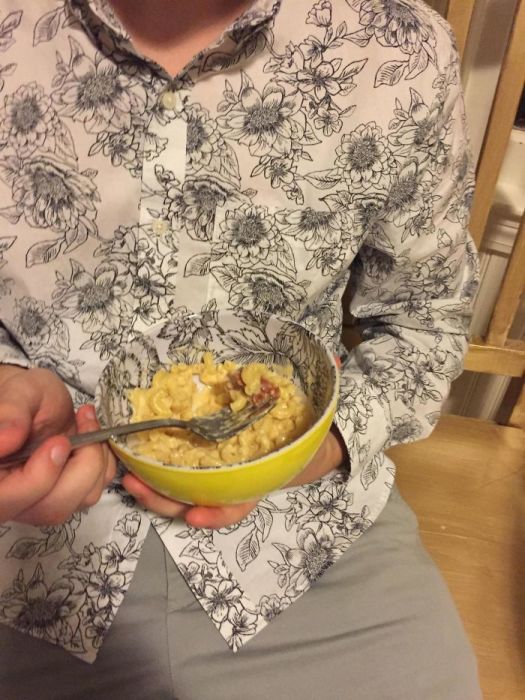 Цветочный узор рубашки почти совпадает с мотивом на внутренней стороне чаши.