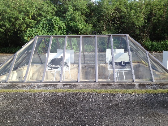 Пока в ресторане казино «Дайности» шёл официальный ланч, я отправился на авиабазу, чтобы не спеша осмотреть её. Тиниан отделён от Сайпана проливом шириной всего около 4 километров. Поэтому остатки авиабазы и сети дорог хорошо видны с воздуха, когда я летаю вокруг Сайпна. От аэропорта прямая, как стрела, дорога вела на север. Американские инженерные войска возвели на месте японских аэродромов самую крупную на тот момент авиабазу в мире. Четыре бетонных ВПП по 2500 метров, рулёжные дорожки и стоянки. Взлётные полосы до сих пор находятся в приличном состоянии. При желании, на них до сих пор можно приземляться. По одной из полос я ехал со скоростью 100 км/час без каких-либо проблем. Тропический лес неумолимо наступает. Но, не везде. Хорошо сохранилось отдельные стоянки. Тут и там стоят обелиски в честь авиаторов эскадрилий, авиакрыльев и групп, а также инженерных батальонов морской пехоты. Повсюду можно увидеть таблички с пояснениями, историческими справками и картами. Целы до сих пор и погрузочные ямы. Так как диаметр обоих атомных бомб превосходил клиренс Б-29, для их загрузки были сооружены специальные бетонные бункеры. Бомбы перед загрузкой были опущены в них, бомбардировщики буксированы сверху. Специальные домкраты подняли бомбы в бомболюки. Сейчас бункеры покрыты стеклянными панелями.