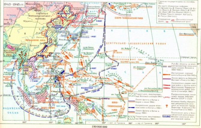 А на "японском" фронте ситуация была еще менее однозначная для союзников, чем в Европе. Хоть наступление японцев выдохлось к концу 1942 года, а уже в 1944 году США перехватили инициативу и начали теснить противника по всему фронту, к началу 1945 года Япония была еще очень далеко от капитуляции. Из всех оккупированных ею территорий она на тот момент потеряла только Филиппины и ряд островов в Тихом Океане, при этом под ее контролем оставалась почти вся Юго-Восточная Азия – богатая полезными ископаемыми Голландская Индия (нынешняя Индонезия), Британская Бирма, Французский Индокитай, подконтрольные ранее Лондону Малайские княжества и главный порт региона Сингапур.