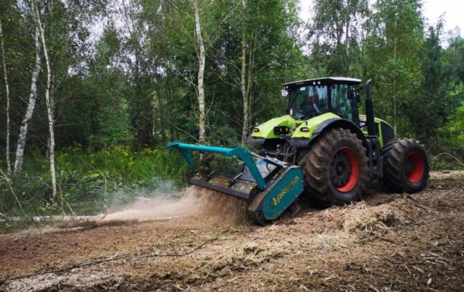 Во-вторых, он помогает снизить количество отходов и облегчить утилизацию древесных остатков. Вместо того, чтобы вывозить остатки лесорубки на специальных машинах, эта техника разрушает их на месте и превращает в удобрение для почвы.