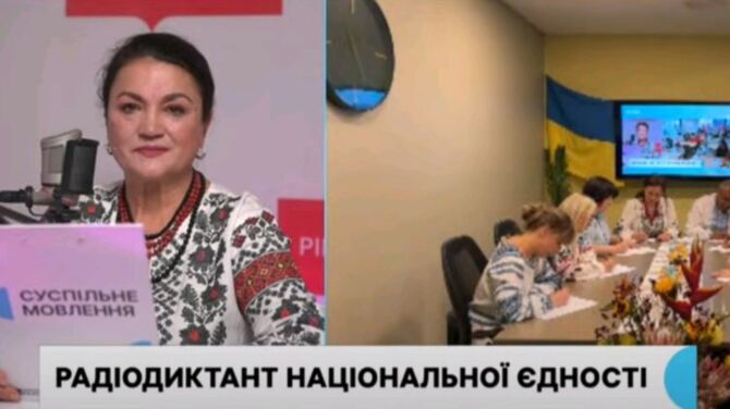 27 октября в Украине состоялся радиодиктант национального единства, автором которого стала писатель, переводчик и исследователь из Киевской школы экономики Евгения Кузнецова. Текст диктанта читала актриса Наталья Сумская.