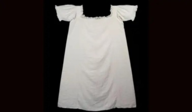 Вначале вещи замачивали в щелочном растворе, затем их терли и стирали с мылом в горячей воде, затем кипятили в огромных чанах, затем полоскали, крахмалили, отжимали, развешивали для сушки, а затем гладили тяжелыми раскаленными утюгами. Представленная белоснежная сорочка – одна из подобных деликатных вещей, свидетельствующая о высоком статусе владельца.