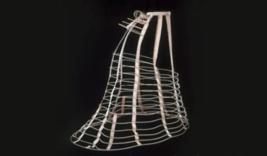 Объем и плавные волнообразные движения кринолина приковывали внимание к бедрам. Дизайнеры 20-го и 21-го веков, такие как Вивьен Вествуд, Ёдзи Ямамото и Жан-Поль Готье, знают об этом будоражащем эффекте и используют кринолины различных модификаций в своих коллекциях. Этот кринолин, датируемый приблизительно 1871 годом, выполнен из льна и пружинной стали. Носить громоздкие конструкции ради того, чтобы выглядеть привлекательно, было в те времена делом обычным. Тем не менее некоторые женщины выступали против кринолинов, мотивируя это вредом для здоровья и частыми несчастными случаями.