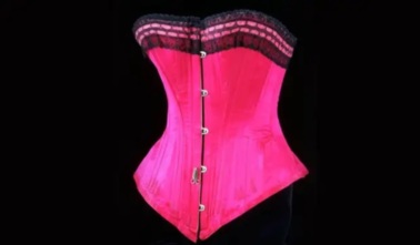 Этот ярко-розовый корсет из шелкового сатина и китового уса был создан примерно в 1890-1895 годах, вероятнее всего, в Англии. Многие из корсетов 19-го века предъявляли своим обладательницам чрезвычайно строгие требования: окружность талии составляла менее 48 см. Тонкость талии увеличивала контраст с бедрами, что зрительно делало нижнюю часть пышнее.