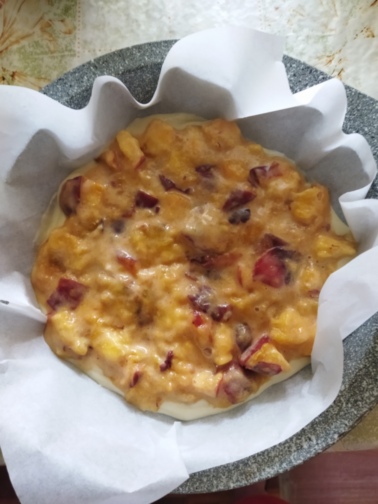 Форму для выпечки застелить пергаментом, если не хотите потом ее отмывать от фруктов.