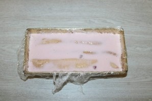 шаг 8. Форму застелите пищевой плёнкой.