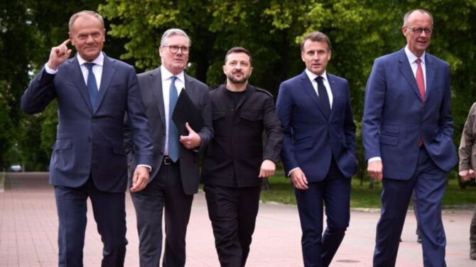 Напомним, заявления Зеленского, Фридриха Мерца, Эмманюэля Макрона и Кира Стармера в Киеве 10 мая рисовали следующую логику действий: фактический ультиматум Путину с требованием объявить прекращение огня на 30 дней с 12 мая, а в случае отказа - жесткие санкции, к которым, судя по словам европейцев, согласились присоединиться и США. Путин ответил на это предложение отказом, выдвинув встречное: прямые переговоры в Стамбуле 15 мая.