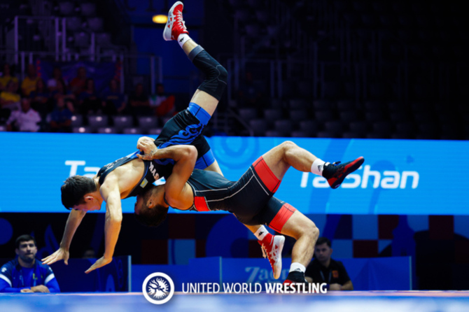 Пятое в карьере участие на чемпионате мира Корюна Саградяна, представителя Украины в самой легкой весовой категории, ограничилось одной схваткой. В ней он уступил 1:2 действующему победителю Панамериканского чемпионата Джайдену Рени из США, который в четвертьфинале проиграл гегемону этой категории Эльданизу Азизли из Азербайджана. Вернее, гегемоном Азизли был до сих пор. В Загребе Эльданиз, выигравший три предыдущих чемпионата мира и четыре всего, уступил 1:3 иранцу Паяму Ахмади. Бронза стала для азербайджанца слабым утешением. Новым чемпионом мира стал 18-летний грузин Вахтанг Лолуа, победивший «шахеда» в яркой финальной схватке 9:7.