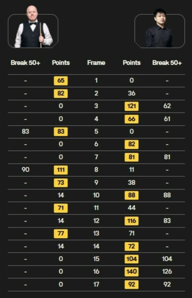Джон Хиггинс (Шотландия) – Чжао Синьтун (Китай) – 7:10