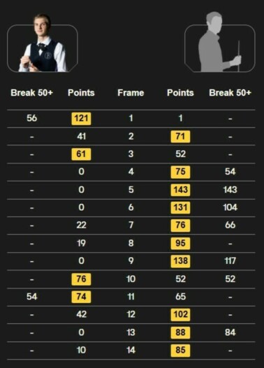 После первой сессии 8 апреля украинец уступал со счетом 2:7. На старте Бойко вел в счете (1:0, 2:1), но затем китаец показал яркую игру и взял 6 фреймов подряд с двумя сенчури-брейками (143 и 104).