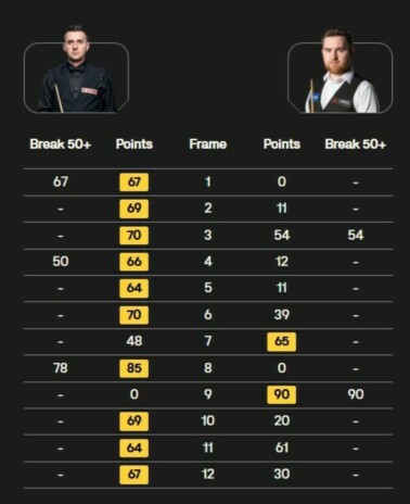 В первой сессии утром Селби повел 7:2 против Джонса, сделав серии 67, 50 и 78 очков, а вечером 7-й номер мирового рейтинга добавил еще три необходимых фрейма (10:2).