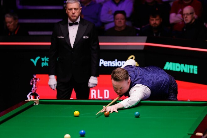 Игроки вернутся на вторую из трех сессий 24 апреля в 16:30 по Киеву. В четвертьфинал выйдет тот, кто первым выиграет 13 фреймов.