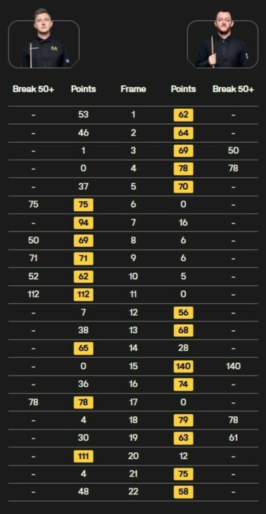 Кайрен Уилсон (Англия) – Марк Аллен (Сев. Ирландия) – 9:13