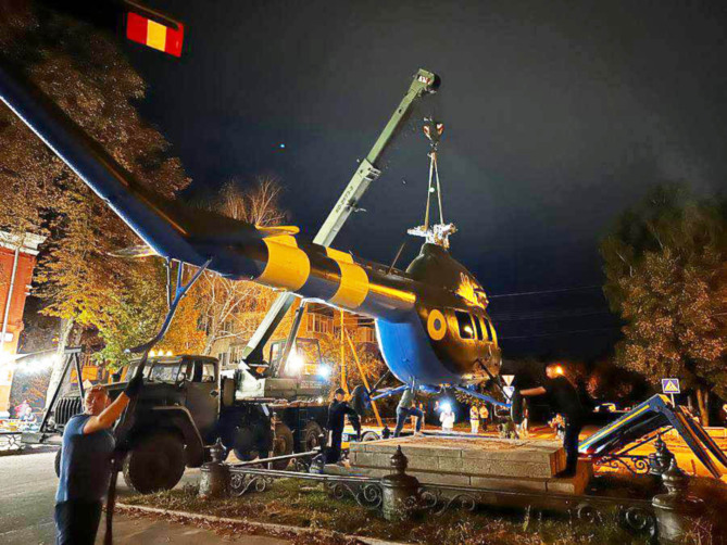 В Полтаве на месте демонтированного памятника Петру I установили вертолёт.