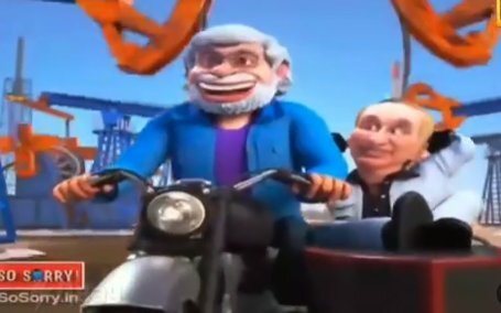В Индии во время визита Путина показали мультик с ним и Моди, в котором премьер-министр ворует кепку у Трампа.