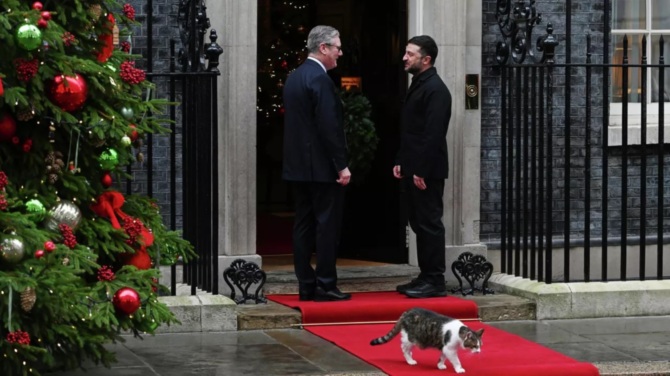 Главный британский мышелов кот Ларри назвал "кошачьей дипломатией" свой отказ войти в резиденцию вместе с премьером-министром Киром Стармером и Владимиром Зеленским.
