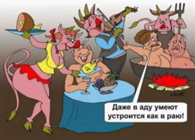 Рай — это американская зарплата, английский дом, китайская еда и украинская жена. Ад — это американская жена, английская еда, китайский дом и украинская зарплата.
